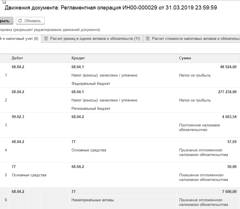 Рис. 21.3.6. Фрагмент движения документа "Регламентная операция",
