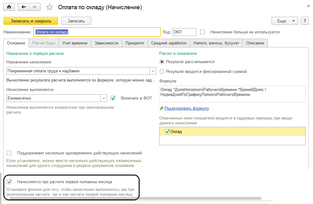 Флаг "Включить в ФОТ" позволит учитывать начисление при расчете планового фонда оплаты труда для планового аванса и некоторых других ситуаций (см.совокупная тарифная ставка и ФОТ – далее в курсе).