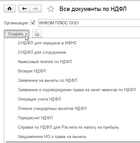 Рис. 9.1.1. Список документов по НДФЛ