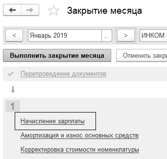 документа "Начисление зарплаты"