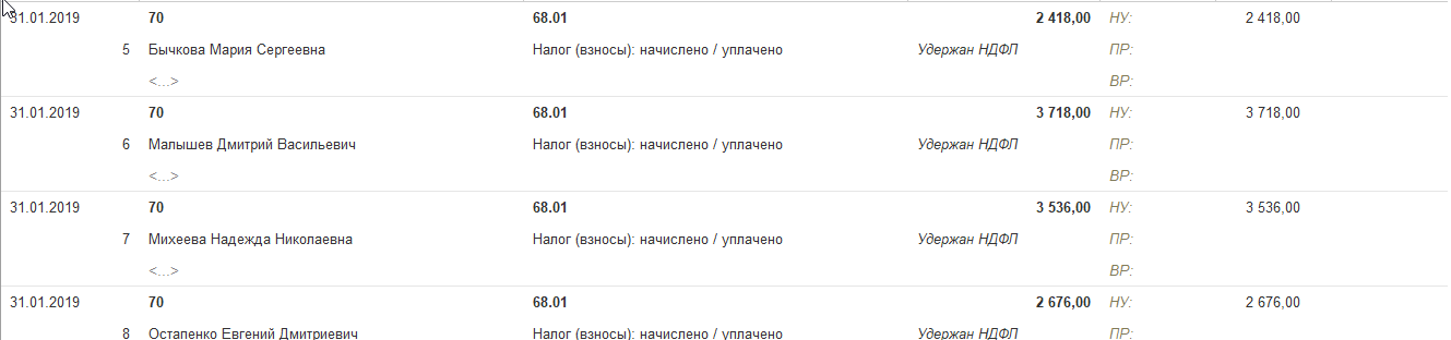 Проанализируйте суммы НДФЛ, показанные на рисунке 9.1.13.