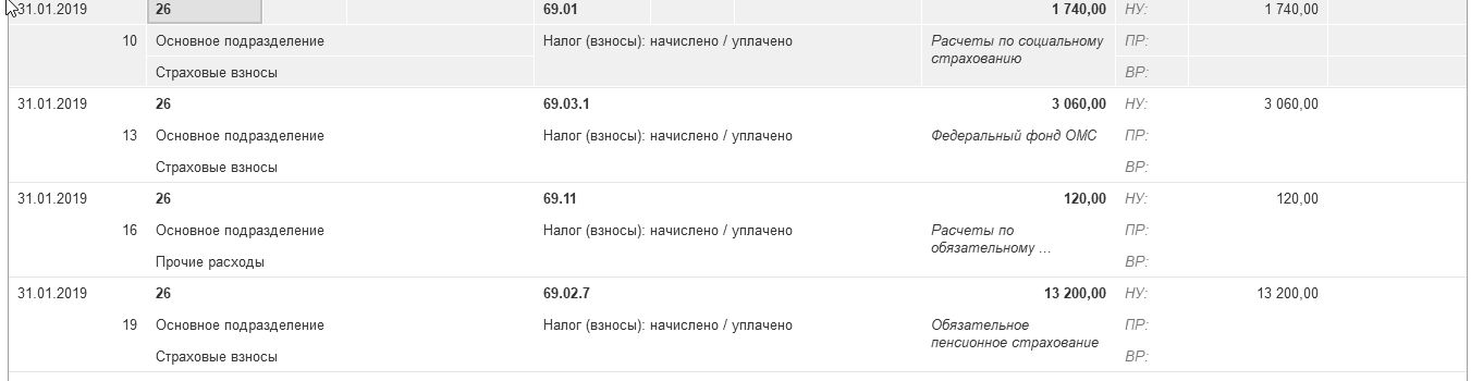 - 201,18 руб. на выплату страховых взносов от несчастных случаев за январь 2019 года.