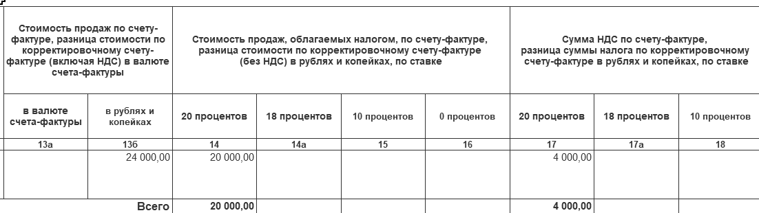 Выручка от облагаемых НДС операций – 24 000 руб. (НДС 20% в т. ч.);