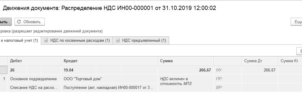Рис. 24.2.8. Движения документа "Распределение НДС"