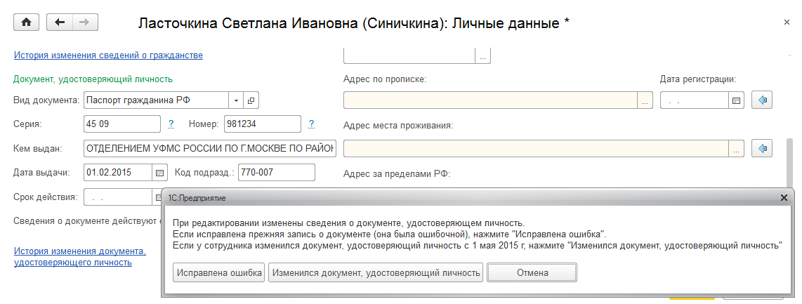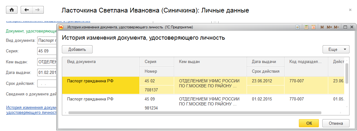 По ссылке "История изменения.." можно посмотреть историю паспортных данных.