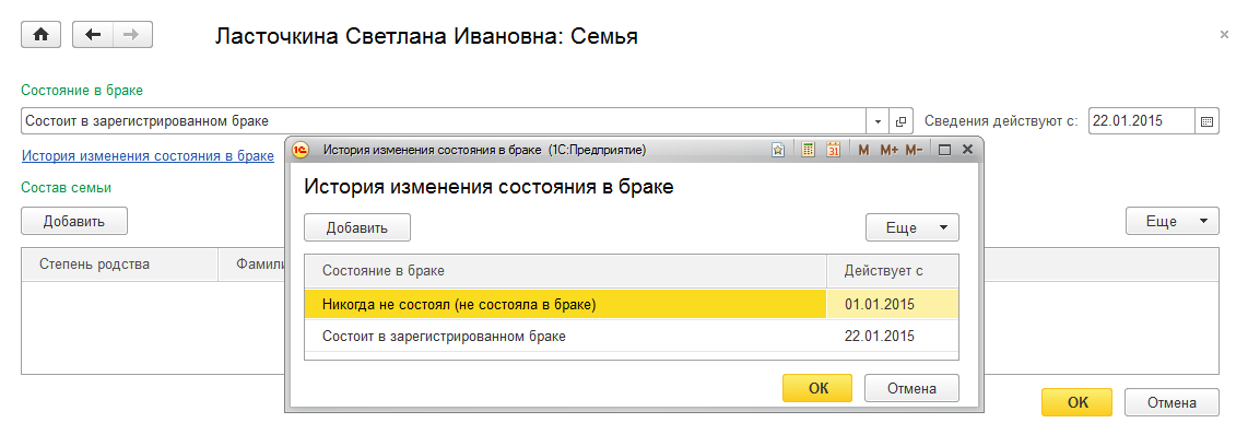 Семейное положение изменим на - "состоит в зарегистрированном браке"