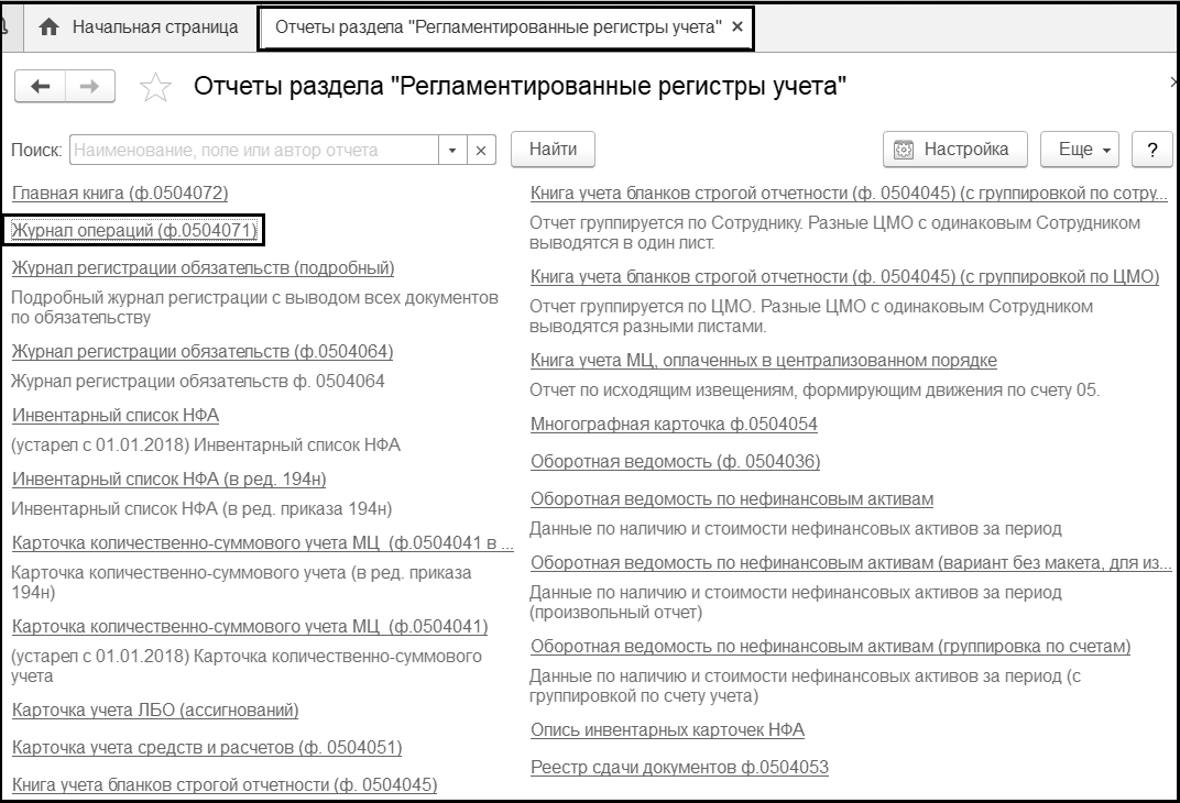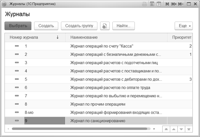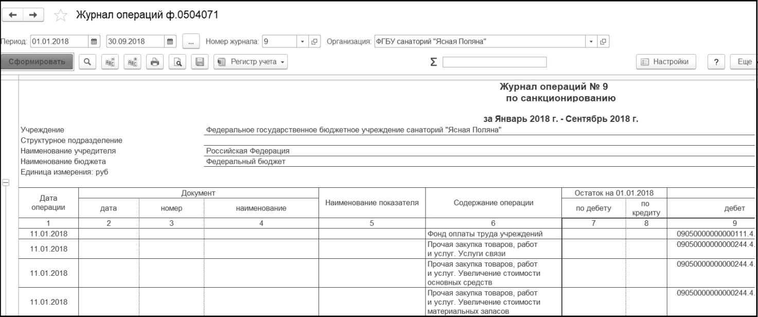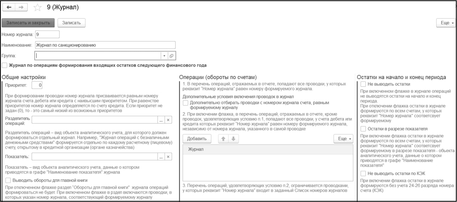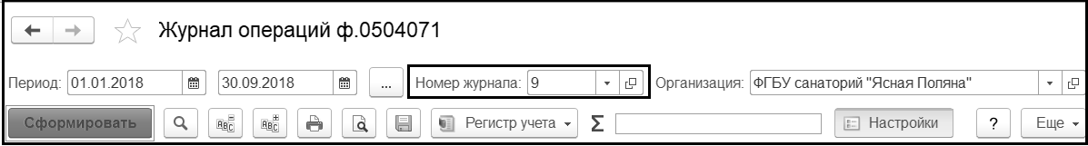 Журнал операций № 9, который позволяет сформировать