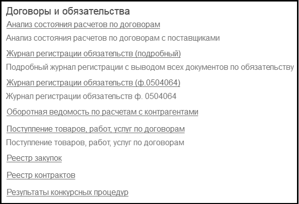 В программе также предусмотрено формирование подробного "Журнала регистрации обязательств" с выводом всех первичных документов по обязательствам –
