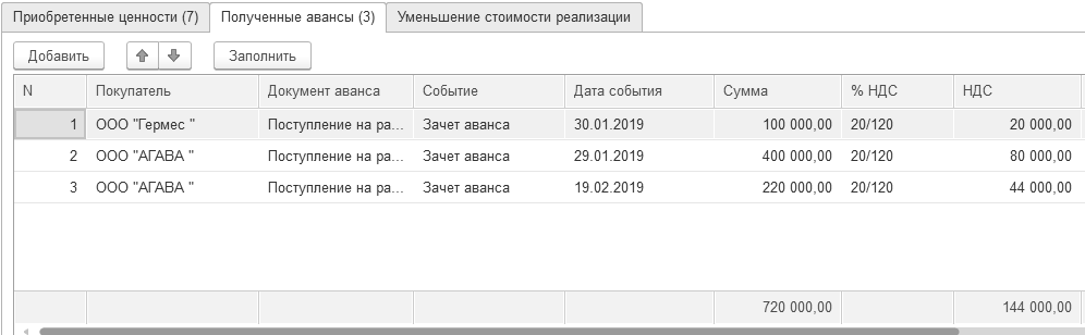 Рис. 20.1.15. Фрагмент формы обработки "Регистрация счетов-фактур на аванс"