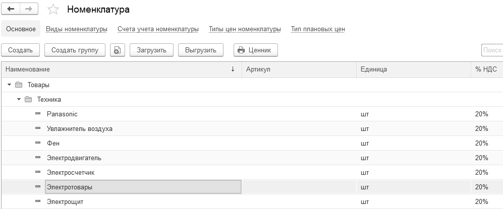 Рис. 20.1.6. Форма окна справочника "Номенклатура"
