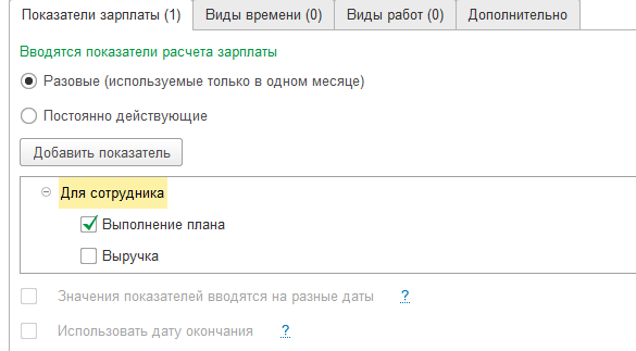 Для единовременных показателей достаточно их отметить флажками