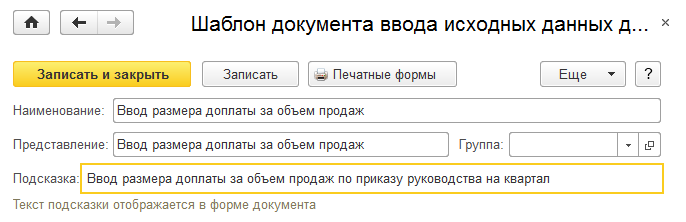 Для ввода показателей для расчета доплаты за объем продаж добавим шаблоны документов: