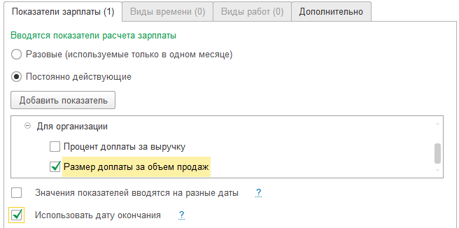 Для постоянных показателей можно отметить ввод на разные даты, а также использование дату окончания действия показателя.