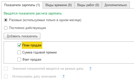- Для единовременных показателей достаточно их отметить флажками