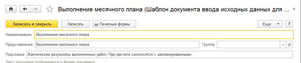 - Подсказка – комментарий к заполнению, который будет отображаться в форме документа;