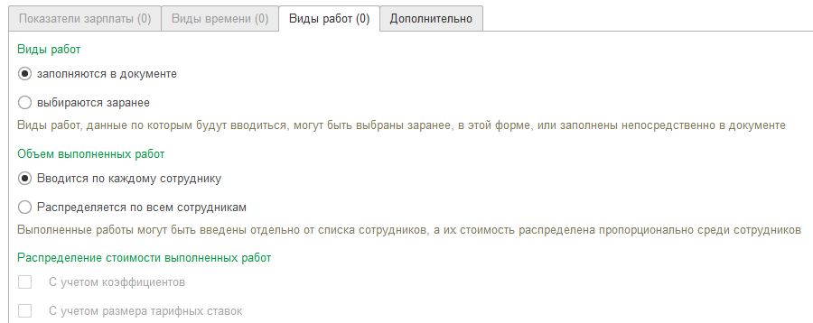 В типовой настройке автоматически добавляется индивидуальный наряд. Остальные варианты пользователь может настроить самостоятельно.