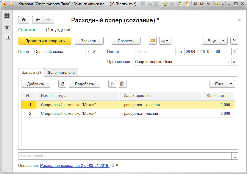 - При продажах: расходная накладная выписывается в офисе, затем покупатель отправляется с ней на склад, где с помощью ордера оформляется фактическая отгрузка товара со склада.