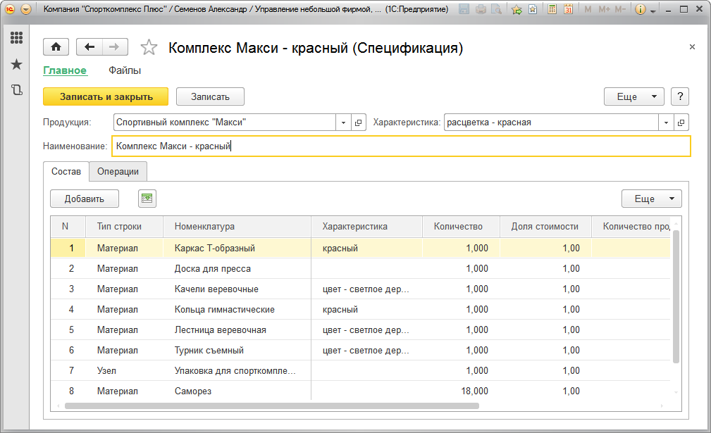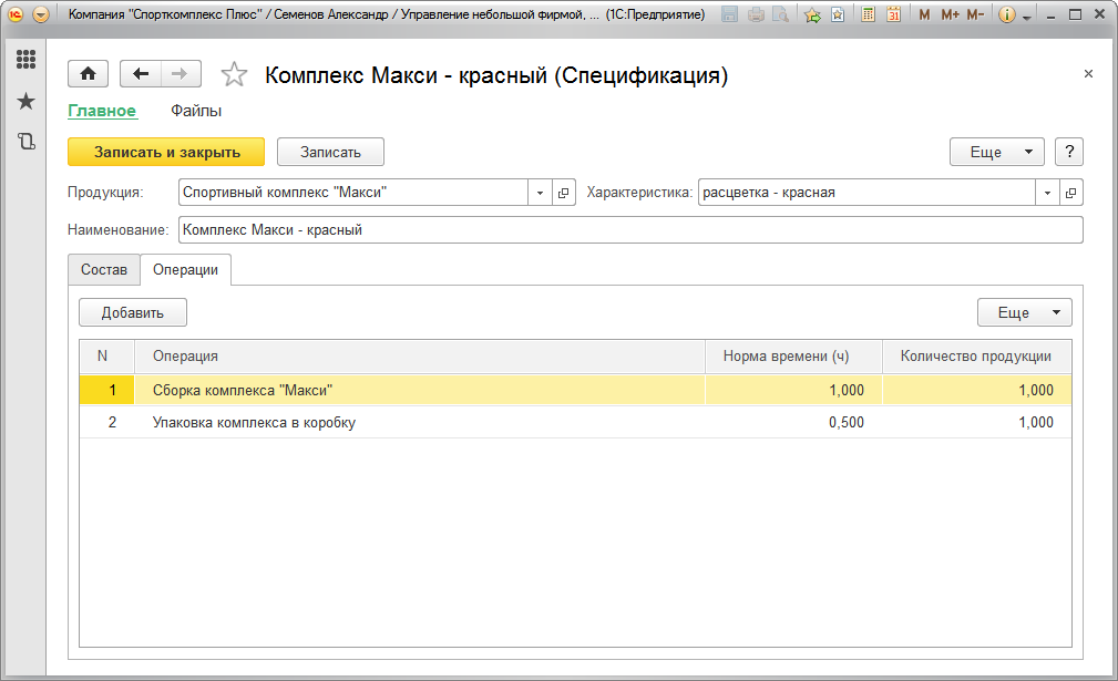 Табличная часть спецификации содержит две вкладки – "Состав" и "Операции".