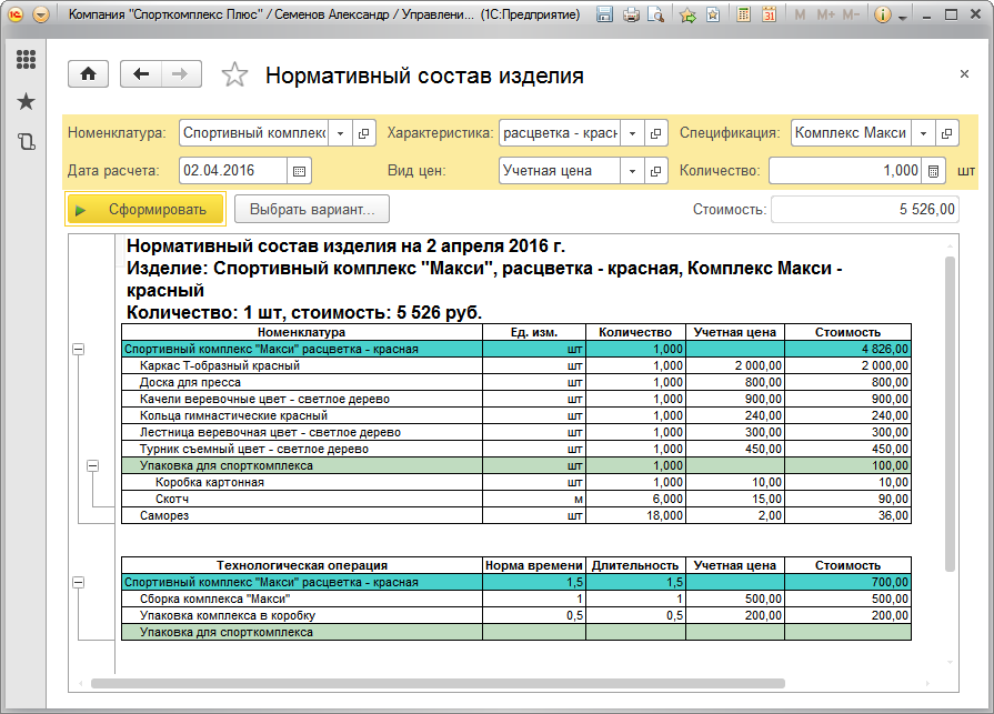 Обратим внимание на то, что если в спецификации присутствуют узлы или сборка, то в отчете они разворачиваются до конечных материалов и техопераций (пример "Упаковка для спорткомплекса" в отчете на Рис. 135).