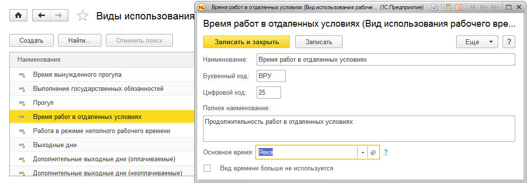 Создаем новый вид использования рабочего времени копированием "Явки"