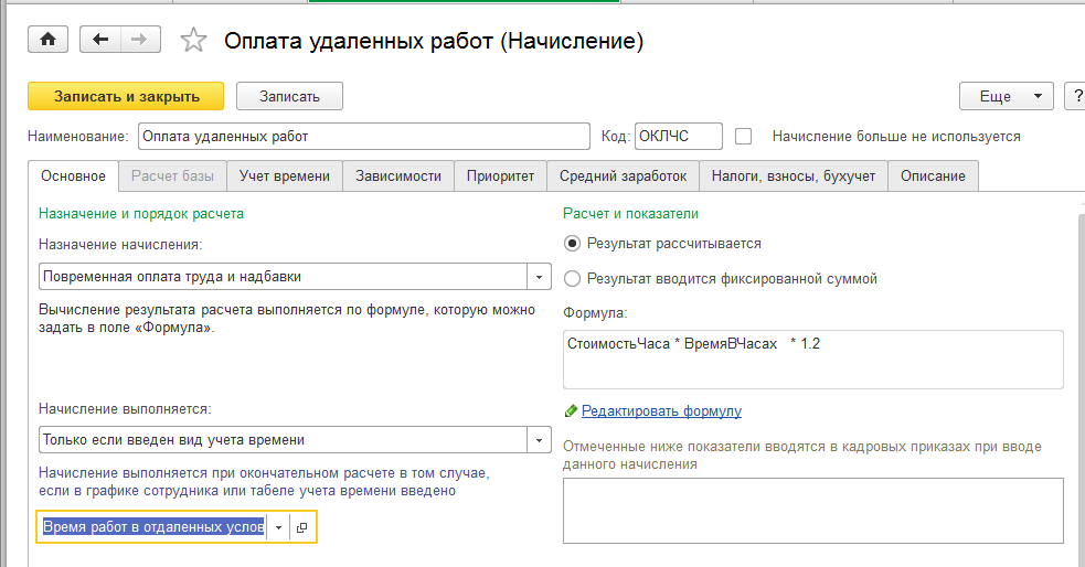 Создание начисления с использованием произвольного вида учета рабочего времени