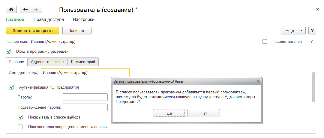 - Иванов (Администратор)
