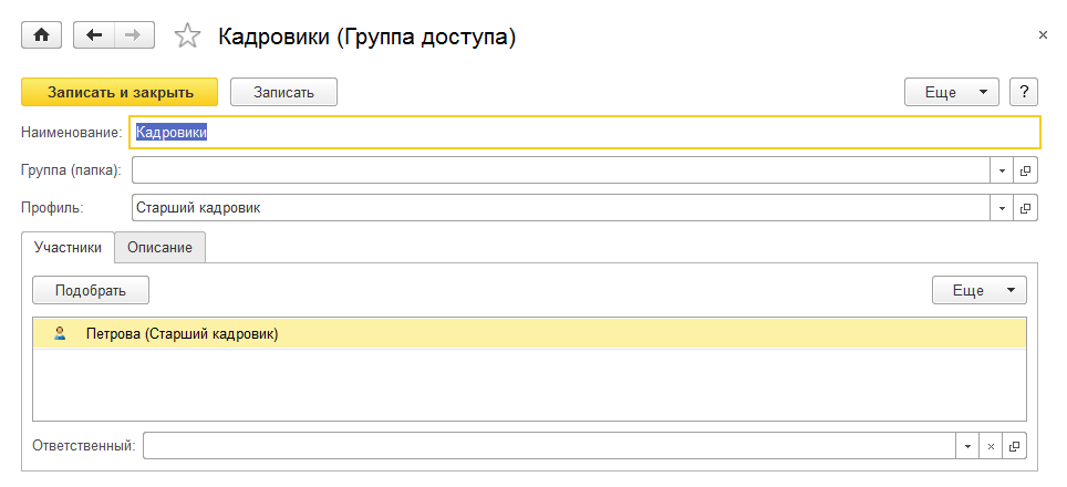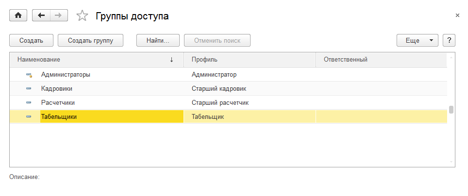 Для каждой группы доступа определяем профиль и состав пользователей.
