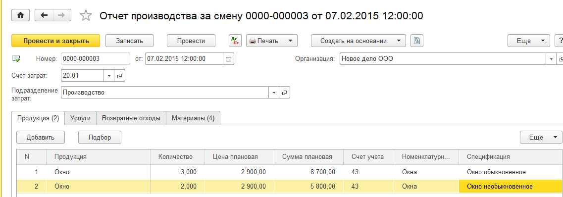 4. 07 февраля отразите в учете выпуск продукции «Окно»: