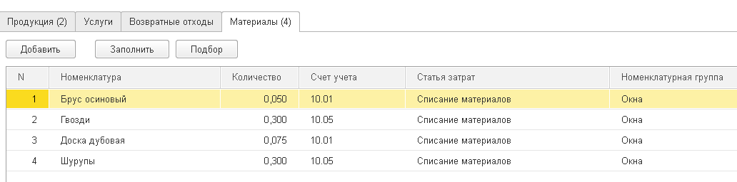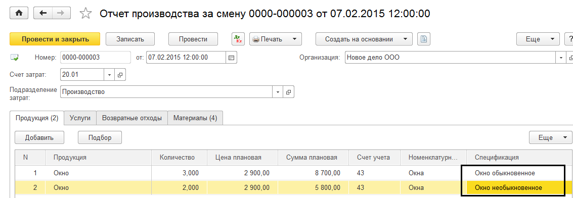 1. Создайте номенклатуру «Окно» в справочнике Номенклатура. (Группа Продукция. Вид номенклатуры - продукция)