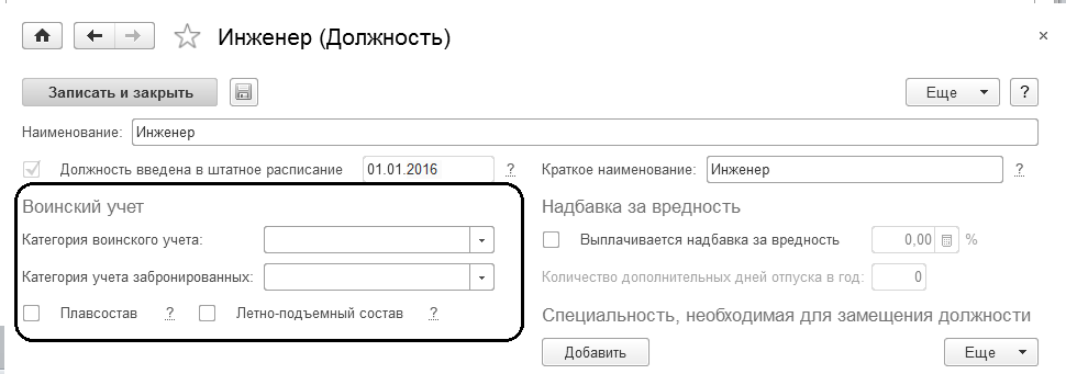 Наименование и краткое наименование должности используются в кадровых документах. Все прочие настройки будут целиком зависеть от наличия тех или иных настроек программы.