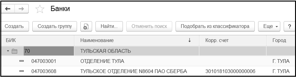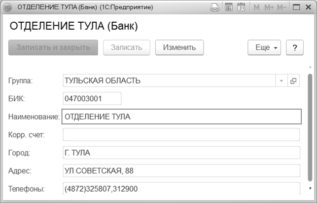 В справочник заносится информация о наименовании банка, в котором открыт расчетный счет учреждения или контрагента, БИК, корреспондентский счет, а также данные о местонахождении банка, телефоны для связи с работниками банка и почтовый адрес банка. Эти реквизиты необходимы для заполнения банковских реквизитов платежных документов.