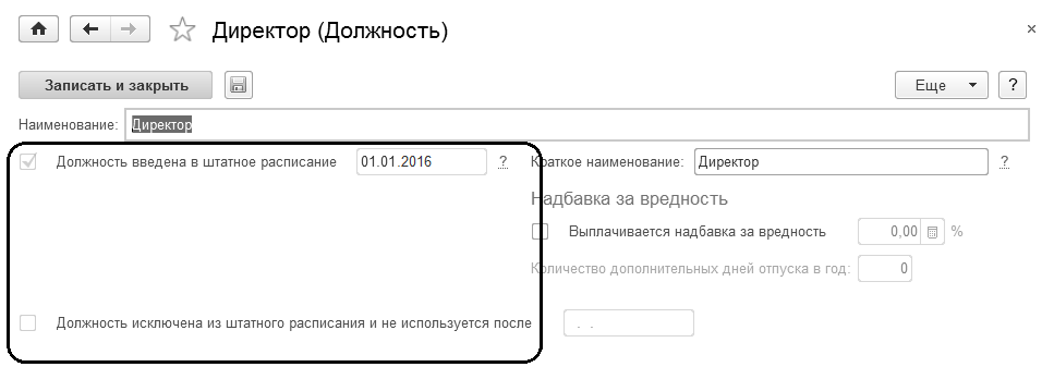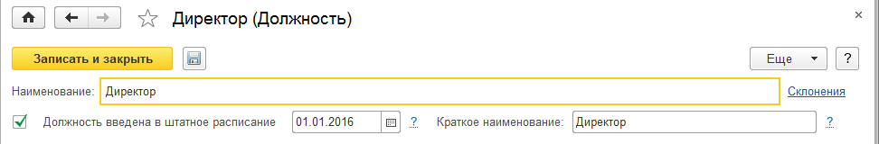 Наименование и краткое наименование должности используются в кадровых документах. Все прочие настройки будут целиком зависеть от наличия тех или иных настроек программы.