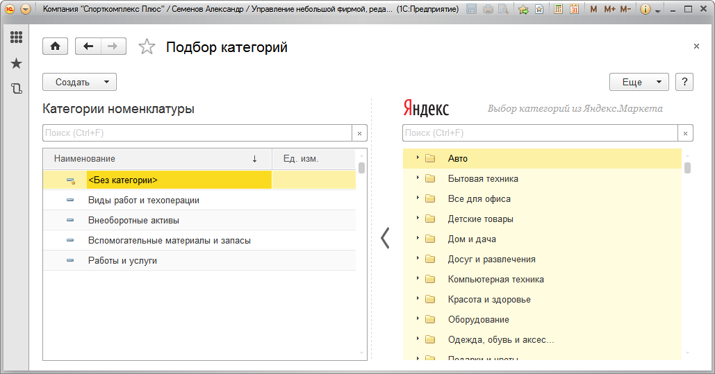 В программе перечень свойств и дополнительных характеристик номенклатурных позиций может быть как настроен самим пользователем системы исходя из потребностей конкретного предприятия так и загружен из категорий Яндекс.Маркета автоматически.