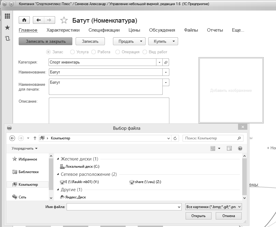 - Загрузить файл изображения в информационную базу (ссылка "Добавить изображение" располагается справа в верхней части карточки – см. Рис. 112 и Рис. 113);