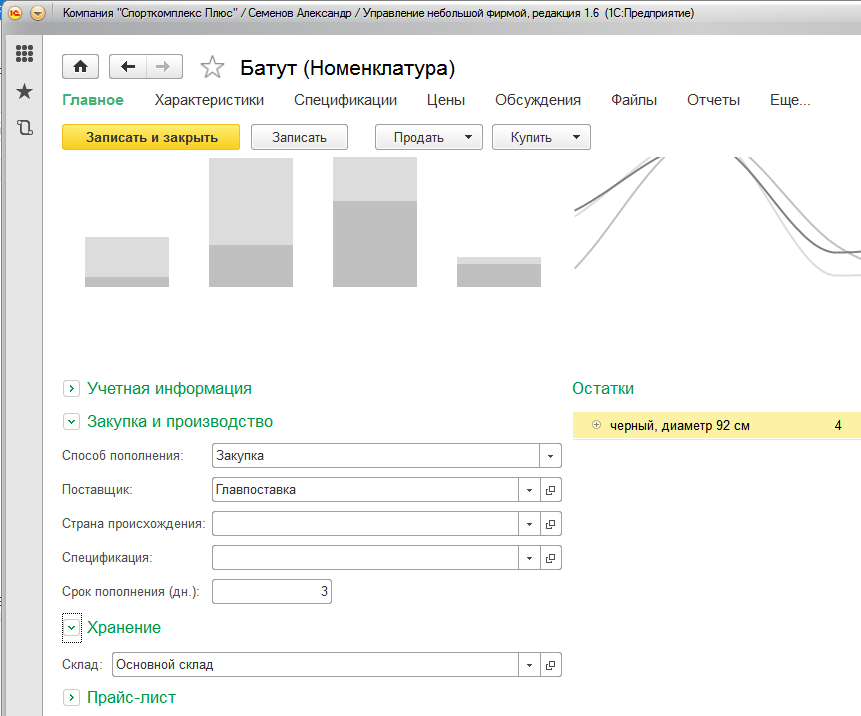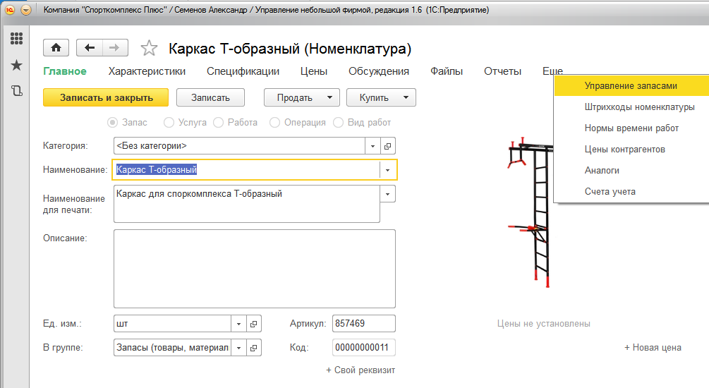 Итак, мы рассмотрели большинство реквизитов, связанных с номенклатурной позицией типа "Запас".