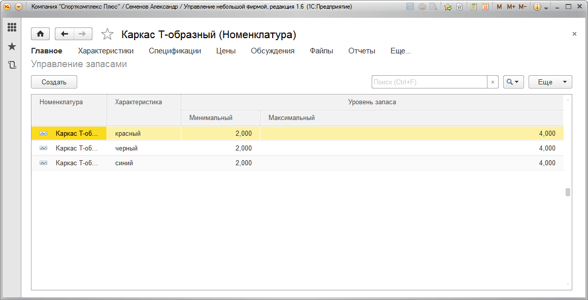 Как мы уже говорили, характеристики номенклатуры, выделенные как отдельный список, позволяют оптимизировать внешний вид справочника "Номенклатура", что, в свою очередь, обеспечивает более удобную работу с программой.