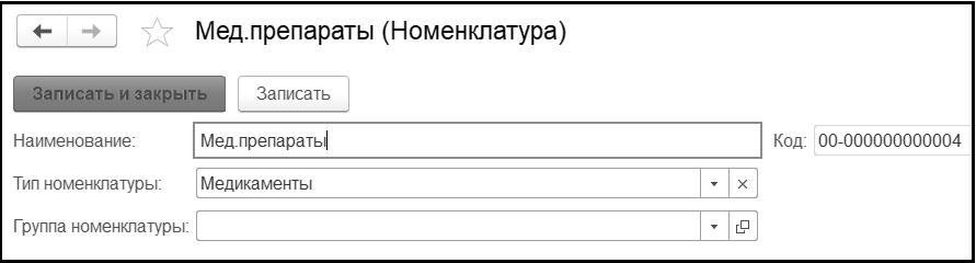 После задания для группы значения реквизита Тип номенклатуры у всех элементов номенклатуры, созданных в этой группе, по умолчанию будет установлен тот же тип номенклатуры. При необходимости его можно изменить.