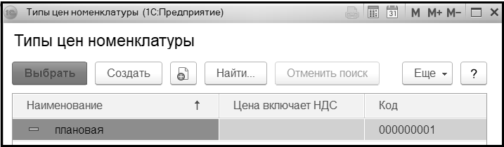 Редактирование типов цен номенклатуры