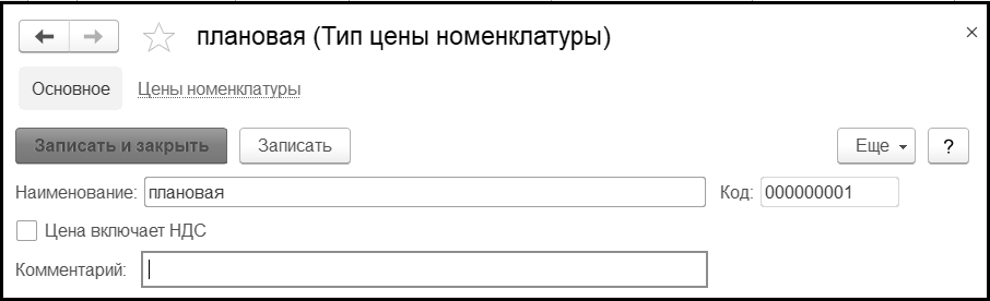 Цена включает НДС – в случае установки флага налог на добавленную стоимость будет включен в цену.