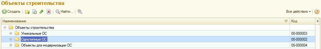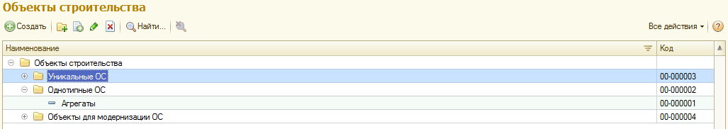 Справочник «Объекты строительства» представляет из себя вид некого котла, куда в течение некоторого времени списываются все затраты на сборку будущего основного средства, а на выходе получаем полную стоимость затрат и, как следствие, стоимость основного средства: