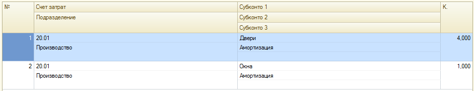 2. Однотипные основные средства (для сбора затрат на несколько одинаковых по составу и стоимости основных средств);
