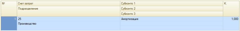 - В справочник «Способы отражения расходов по амортизации» добавьте новый способ: