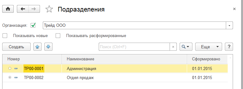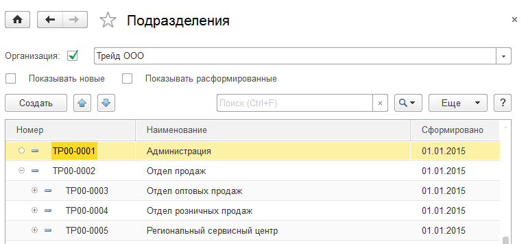 Аналогичным образом добавим подразделение «Отдел продаж».