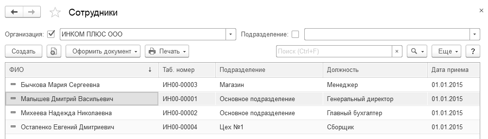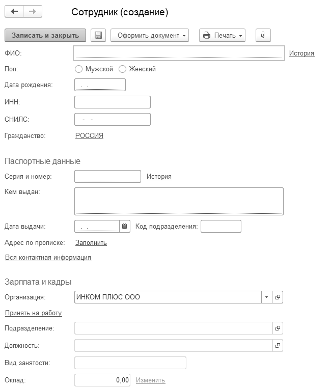 Сведения о сотрудниках вводятся в одной форме, без перехода по ссылкам, как это было в более ранних релизах (рис. 3.3.1).
