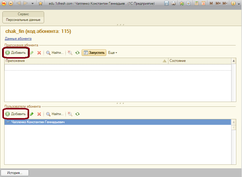 Есть два взаимосвязанных списка - "Приложения" и "Пользователи абонента".