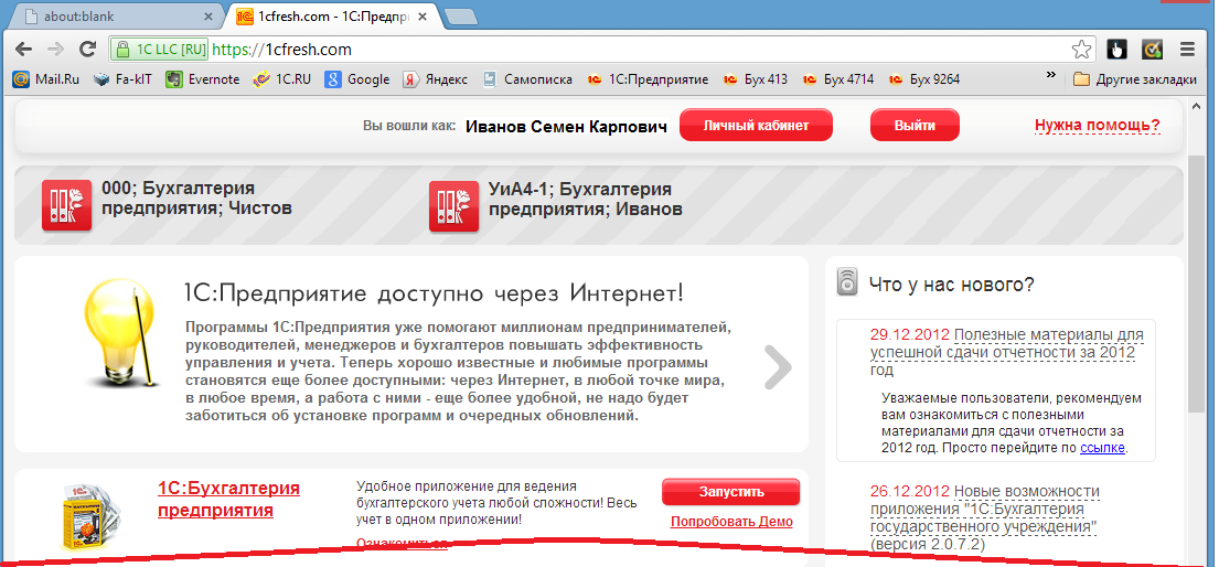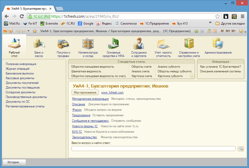 Рис. 1-16a. Вход в сервис fresh от имени пользователя Иванов.