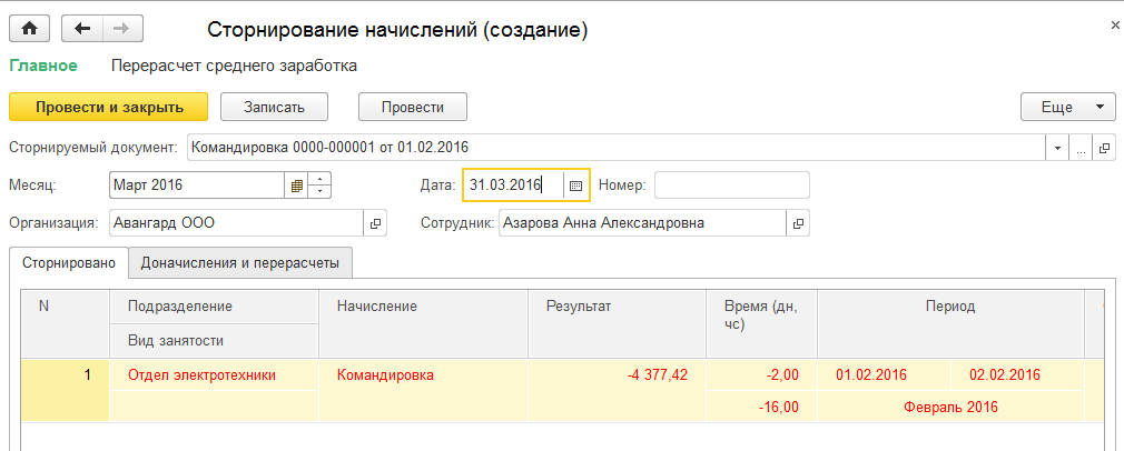 - Из раздела "Зарплата/ Сторнирования начислений"