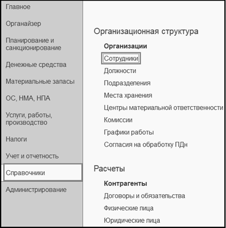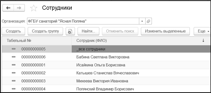 В справочник можно занести всех сотрудников или только некоторых, например, администрацию, материально ответственных и подотчетных лиц.