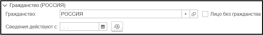 В разделе Гражданство вводятся сведения о гражданстве сотрудника.