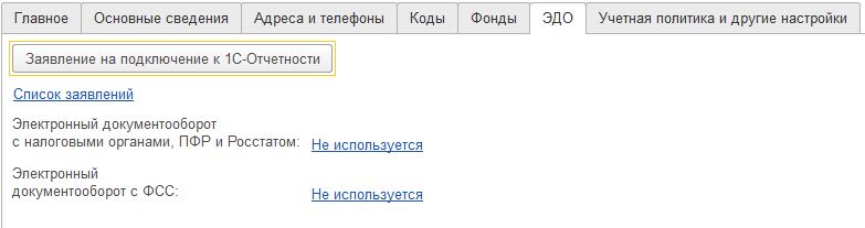 На закладке "ЭДО" можно настроить возможность взаимодействия с налоговыми органами, ПФР, ФСС и Росстат по телекоммуникационным каналам с использованием системы 1С-Отчетность либо посредством ПК "Спринтер" компании "Такском". В нашей учебной базе взаимодействие отключено, вся отчетность выгружается во внешние файлы (в произвольную папку на компьютере/сервере).